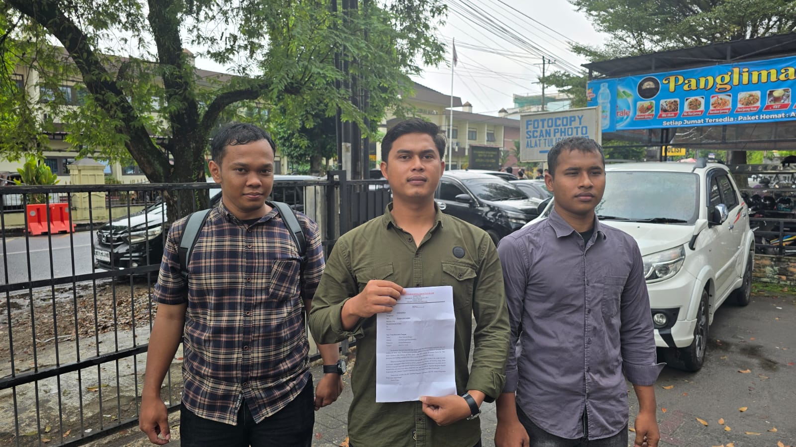 Photo: Pengurus AMCTA diwakili Rapi Lamnur Siregar memperlihatkan surat Dumas terkait keabsahan/legalitas pabrik peleburan besi di Desa Sampali Kabupaten Deliserdang yang dilaporkan ke Polrestabes Medan, Senin (10/3).