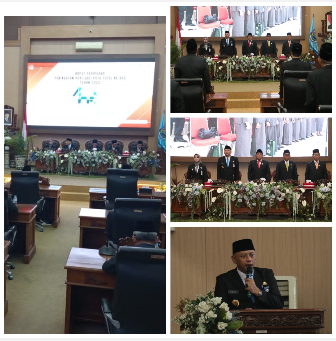 Tema tersebut disampaikan Wali Kota Tegal, Dedy Yon Supriyono saat memberikan sambutan pada Rapat Paripurna Istimewa DPRD Kota Tegal dalam rangka HUT ke-445 Kota Tegal, Jum’at (11/4/2025) di Ruang Rapat Paripurna DPRD Kota Tegal. Rapat dipimpin oleh Ketua DPRD Kota Tegal, Kusnendro didampingi Wakil Ketua I DPRD Kota Tegal Wasmad Edi Susilo dan Wakil Ketua II DPRD Kota Tegal Amiruddin.