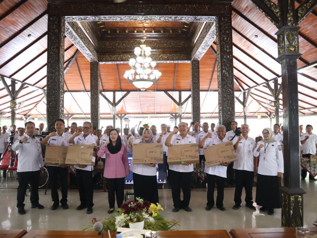 Launching ditandai dengan pemukulan gong serta penyerahan 17 PC Komputer oleh Bupati Brebes Hj Paramitha Widya Kusuma SE MM secara simbolis beberapa camat, di Pendopo Kabupaten Brebes, Rabu (8/10/2025).