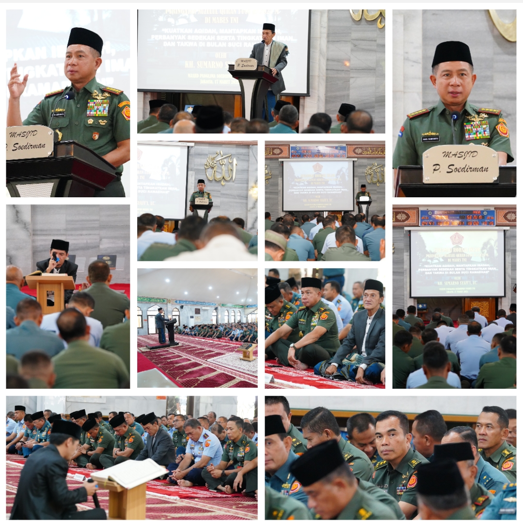 Jakarta, LIDIK KRIMSUS – II Panglima TNI Jenderal TNI Agus Subiyanto menghadiri Ceramah Rohani Islam dalam rangka peringatan Nuzulul Quran 1446 H/2025 M yang mengusung tema “Kuatkan Aqidah, Mantapkan Ibadah, Perbanyak Sedekah serta Tingkatkan Iman dan Takwa di Bulan Suci Ramadhan” dengan pecemah Kh. Sumarno Syafi’i, LC., bertempat di Masjid Panglima Soedirman Mabes TNI, Cilangkap, Jakarta Timur, Senin (17/03/2025).