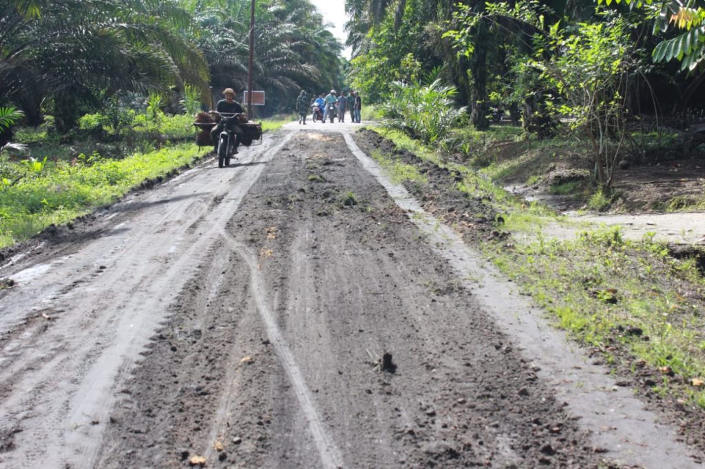 Memasuki hari keenam, fokus utama kegiatan terpusat pada pekerjaan pengerasan jalan di Jalan Sukamaju, RT 11, Kelurahan Bukit Kayu Kapur, Kecamatan Bukit Kapur.