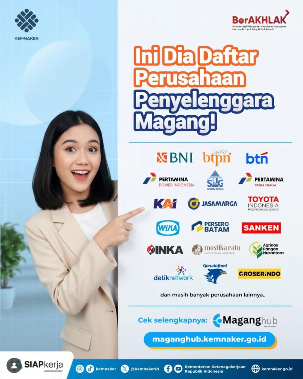 Magang menjadi laboratorium kehidupan tempat generasi muda mempelajari disiplin, tanggung jawab, kolaborasi, dan kreativitas — nilai-nilai yang membentuk pribadi mandiri dan berdaya saing global.