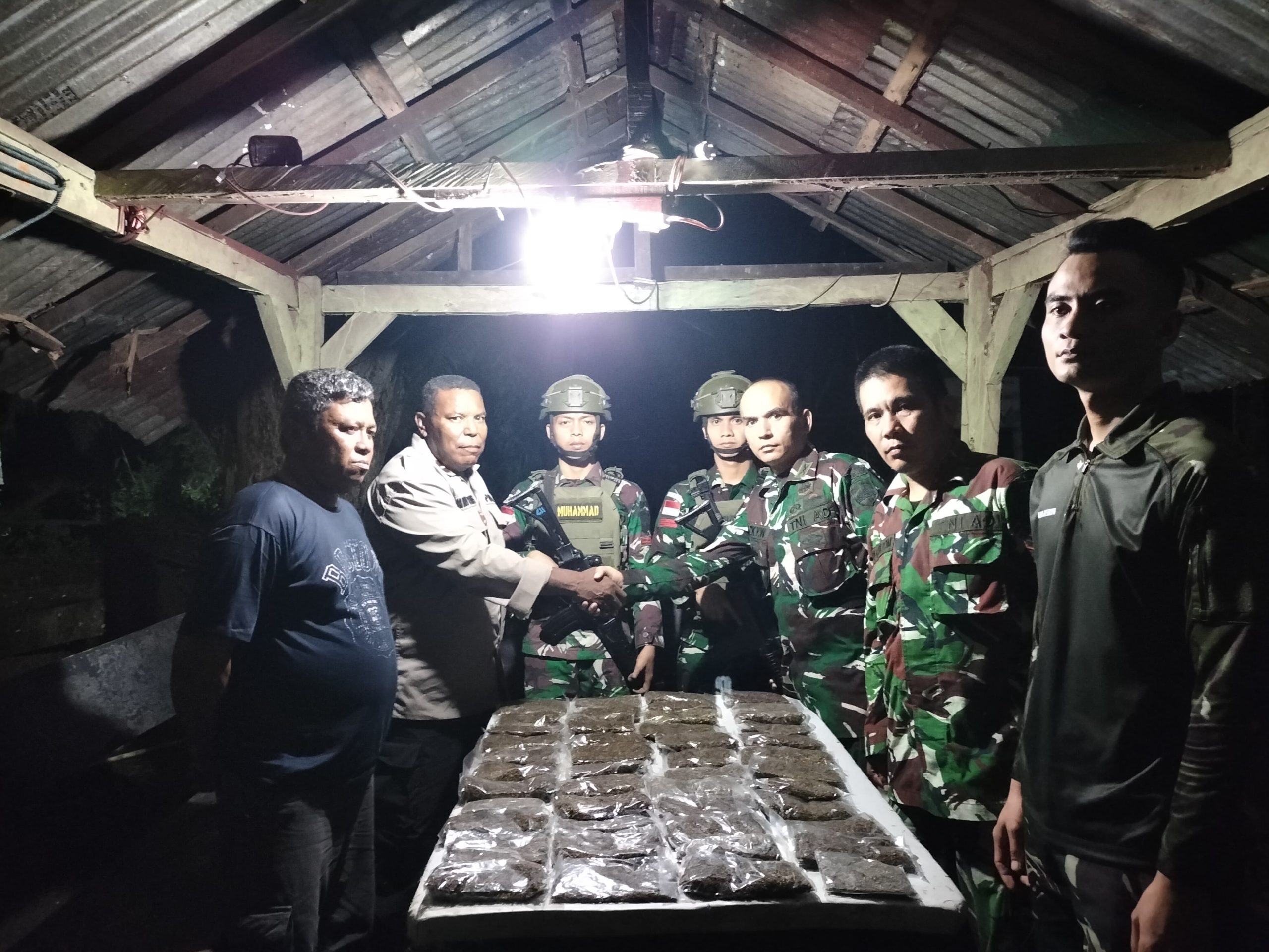 KEEROM, LIDIK KRIMSUS – II Satgas Yonif 131/BRS kembali berhasil mengamankan upaya penyelundupan narkotika jenis ganja kering seberat 1.890 gram dari 2 (dua) orang pemuda di wilayah perbatasan Papua. Penggagalan penyelundupan barang haram tersebut dilakukan di dua tempat Pos yang berbeda, yang pertama oleh Pos Pitewi dan yang kedua oleh Pos Mosso, melalui kegiatan pemeriksaan rutin yang dilaksanakan di perkebunan sawit Pitewi serta kampung Mosso, Minggu (09/02/2025).